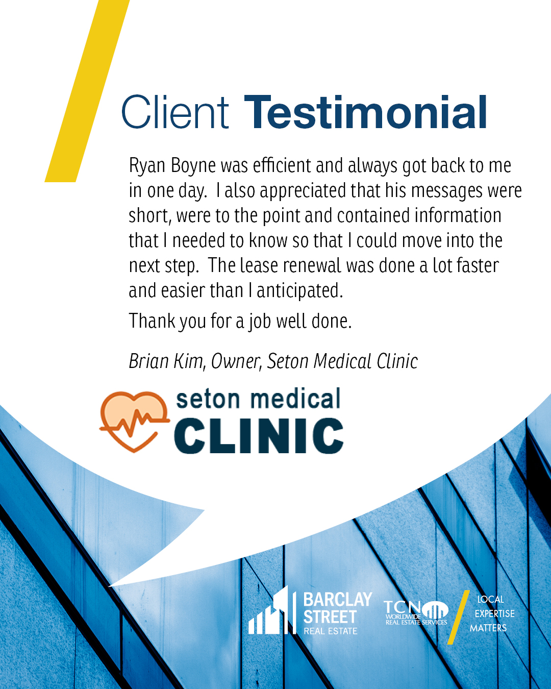 “… we would not hesitate to endorse the services of Ryan Boyne &